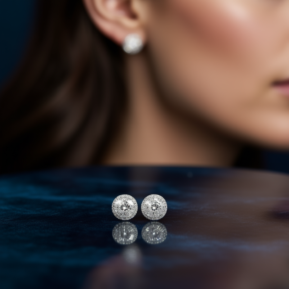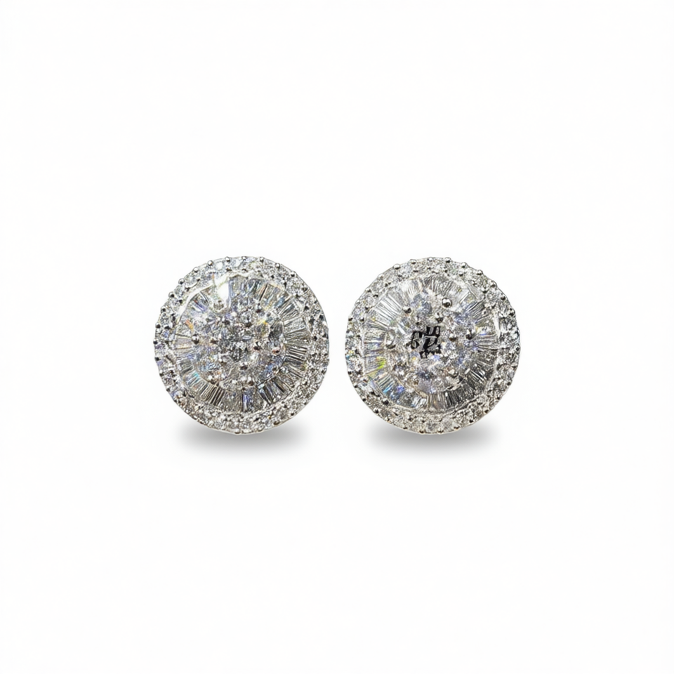 E1079 Orecchini in oro bianco con diamanti, taglio rotondo brillante, colore D, gioielli da sposa classici naturali da donna