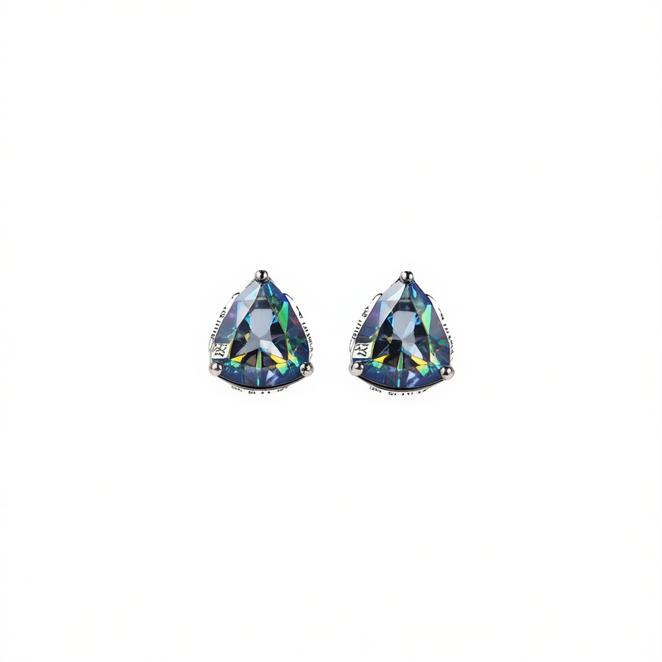 E1121 Rainbow Quartz Stud Earrings Water Drop Shape 925 Silver Claw Setting Women's Classic Crystal Jewelry