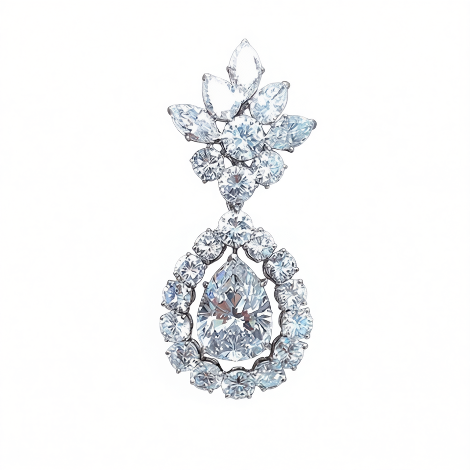 E1137 White Gold Diamond Earrings Pear Cut Natural D Color Classic Women's Wedding Jewelry