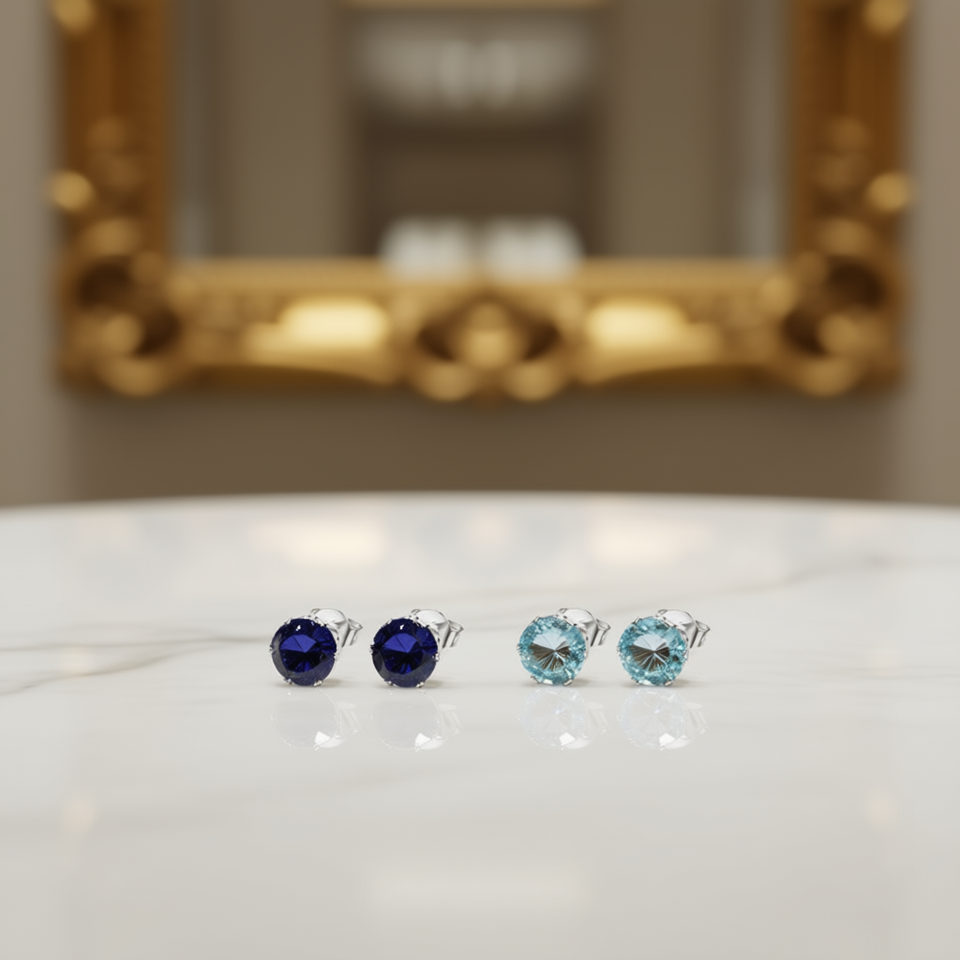 E1175 Pink Crystal Stud Earrings 925 Silver Bezel Setting Classic Everyday Wear Unisex Jewelry