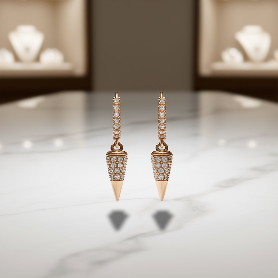 E1193 Gold Spike Drop Earrings Women 18K Gold Filled Crystal Micro Insert Everyday Wear
