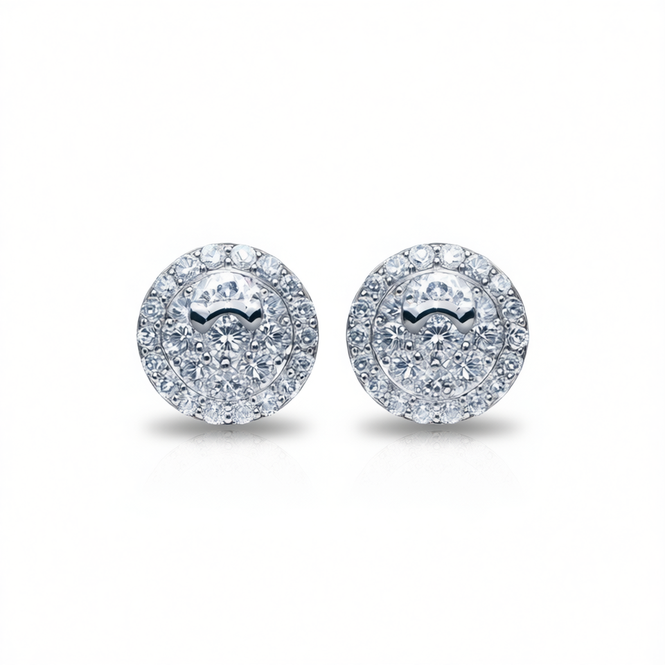 E1274 Orecchini in oro bianco con diamanti, taglio rotondo brillante, stile classico da donna, diamanti naturali colore D