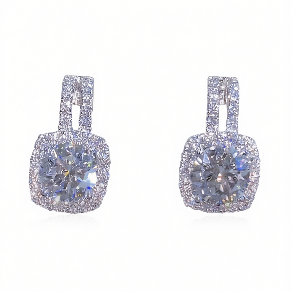 E1278 White Gold Diamond Earrings Round Brilliant Cut D Color Natural Luxury Women's Jewelry