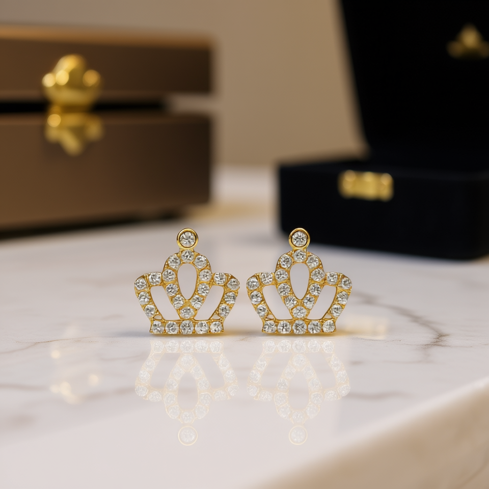 E1288 Gold Crown Diamond Earrings Women's Everyday Wear Cute Style Brilliant Cut G Color Natural Diamonds Gold Plated