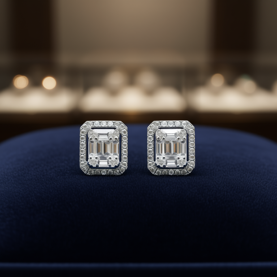 E1387 White Gold Diamond Earrings Emerald Cut Natural D Color Classic Women's Jewelry