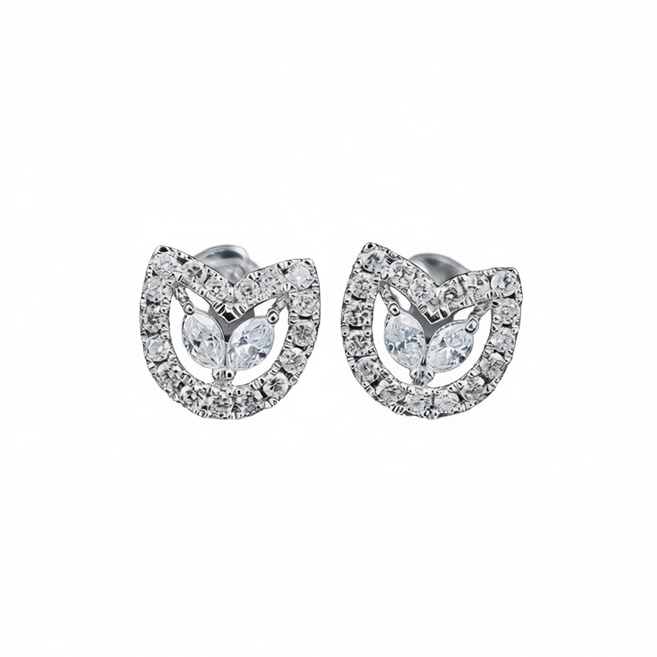 E1410 White Gold Stud Earrings Marquise Cut Crystal Rhinestone Prong Setting Women's Classic Party Fashion Jewelry