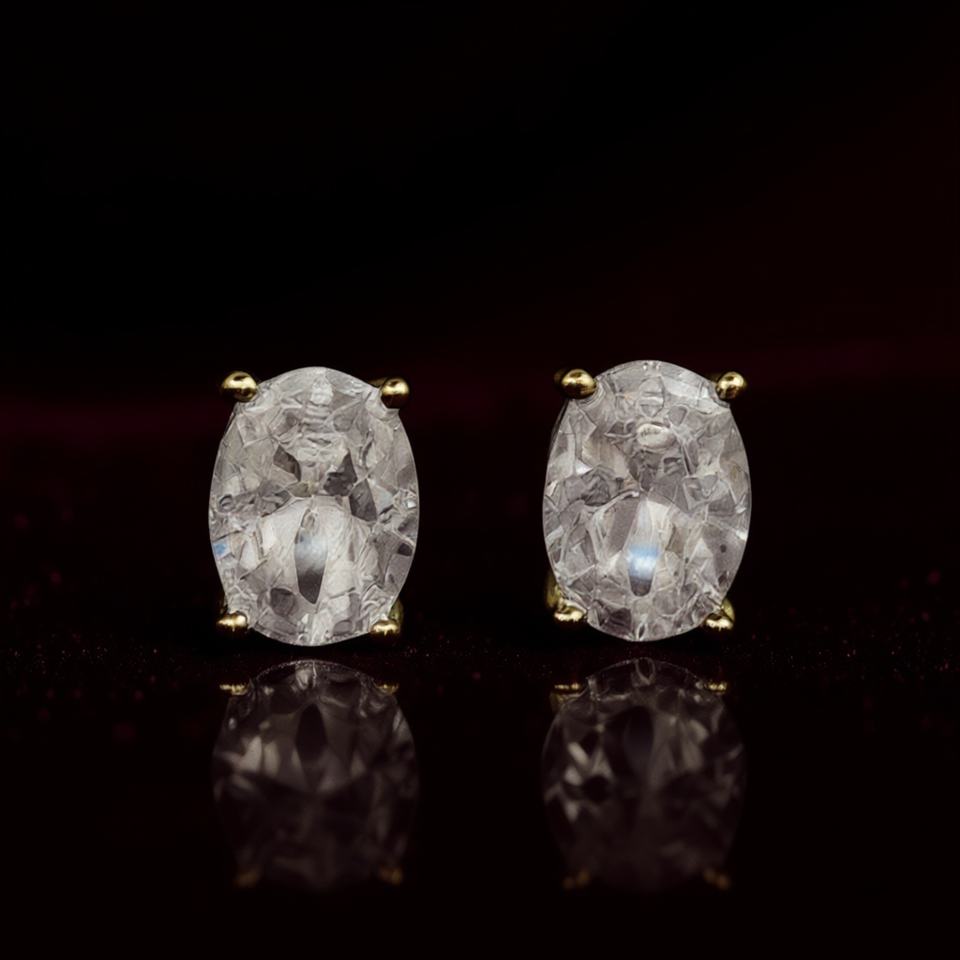 E1428 Orecchini in oro giallo con diamanti taglio ovale, colore G, naturali, classici da donna per l'uso quotidiano