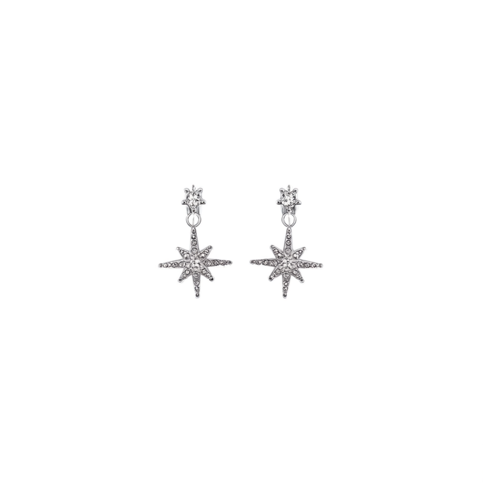 E1478 Orecchini pendenti a forma di stella in oro bianco con montatura a griffe di diamanti rotondi per donna, stile classico