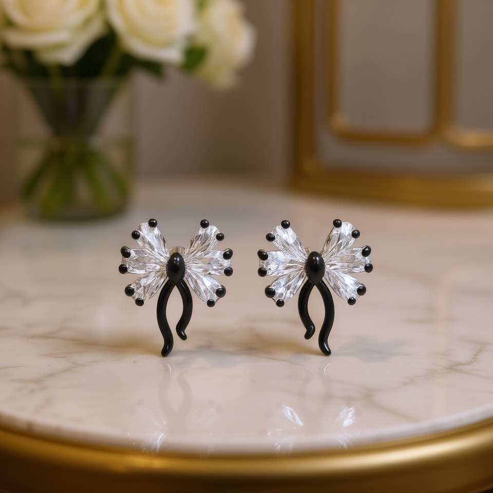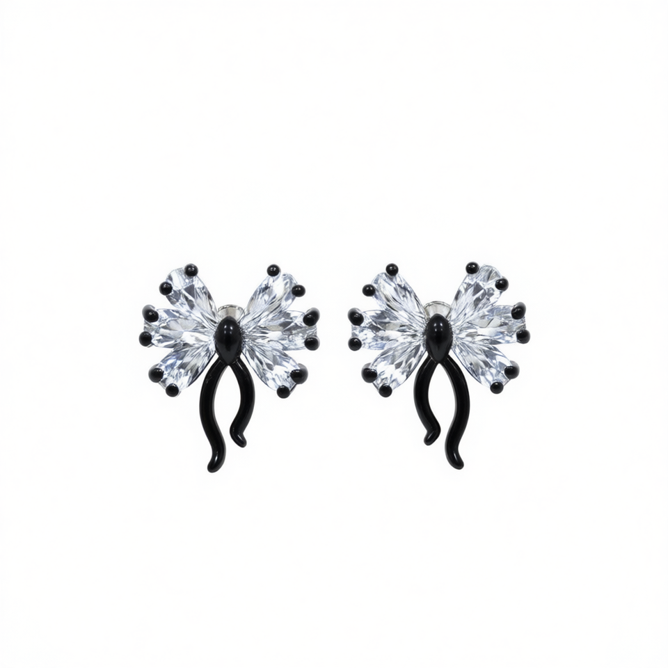E1484 Butterfly Stud Earrings White Gold Plated Crystal Rhinestone Women's Fashion Party Jewelry Cute Design