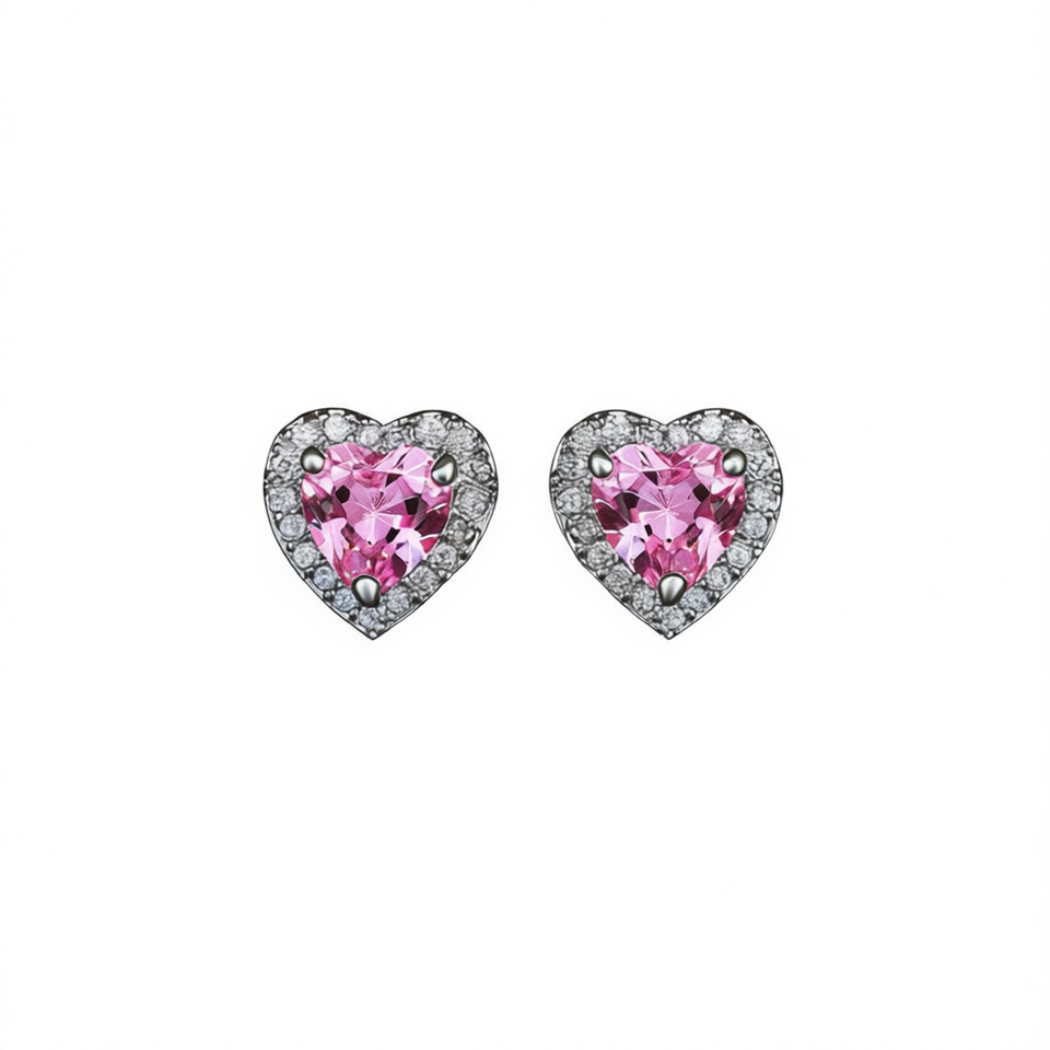 E1492 Heart Stud Earrings Pink Crystal Claw Setting Romantic Women's Everyday Wear Jewelry