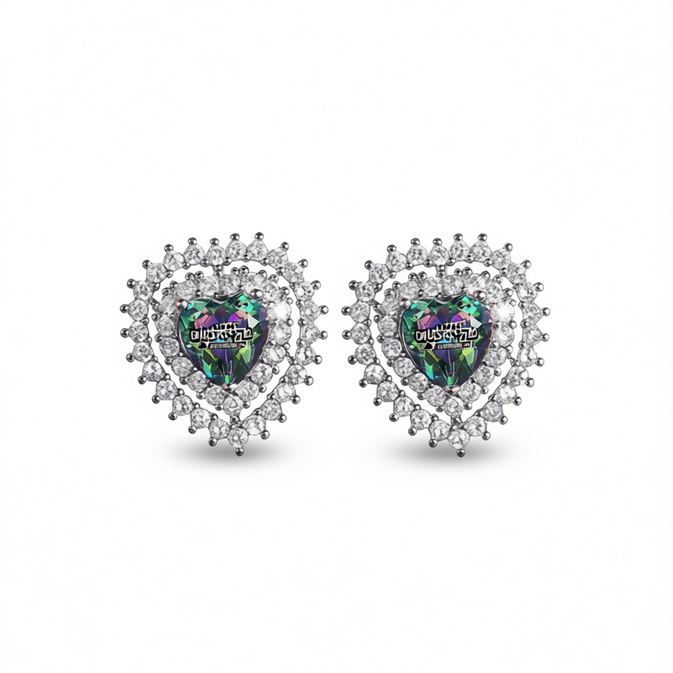 E1512 White Gold Heart Stud Earrings With Rainbow Quartz Crystal Claw Setting Luxury Women's Party Jewelry