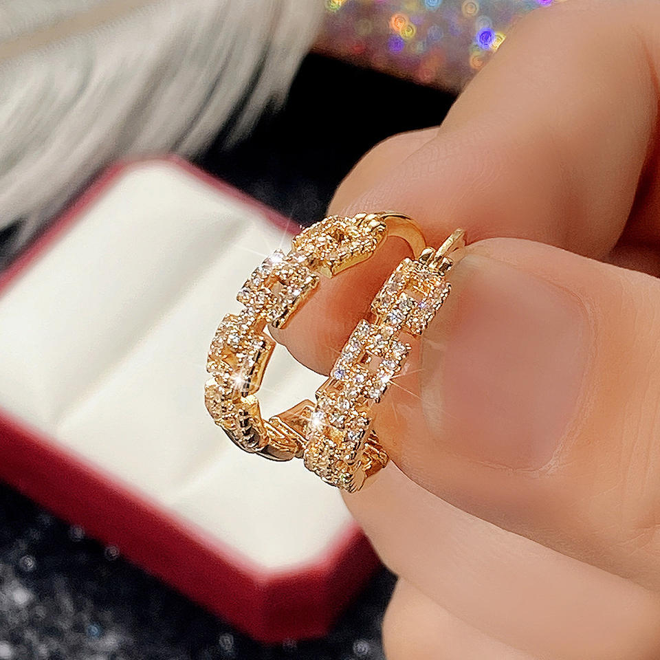 Orecchini a Cerchio E1530 in Oro con Cristalli Geometrici e Strass, Lussuosi per Uso Quotidiano Femminile