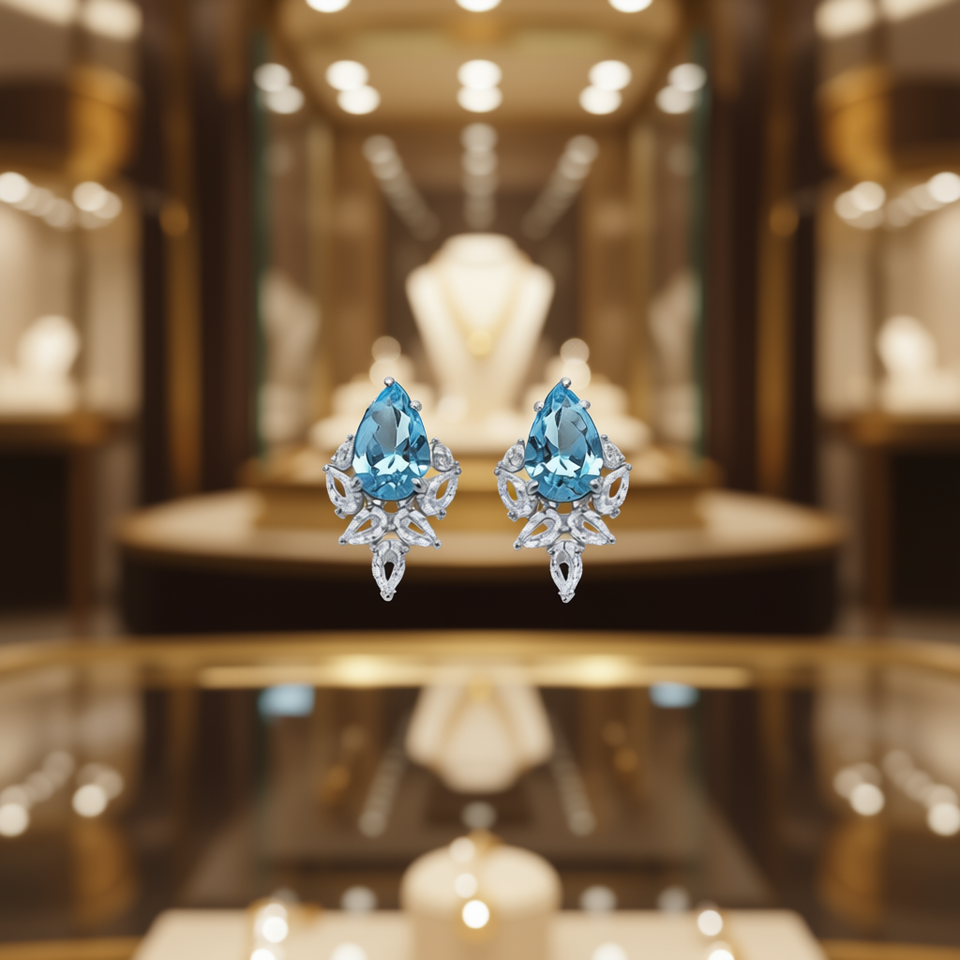 E1536 Pink Stud Earrings With Pear Cut Pink Gemstone Flower Design Claw Setting Alloy Women's Classic Party Jewelry