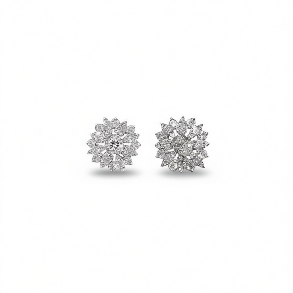 E1595 White Gold Diamond Earrings Round Brilliant Cut D Color Natural Women's Classic Style