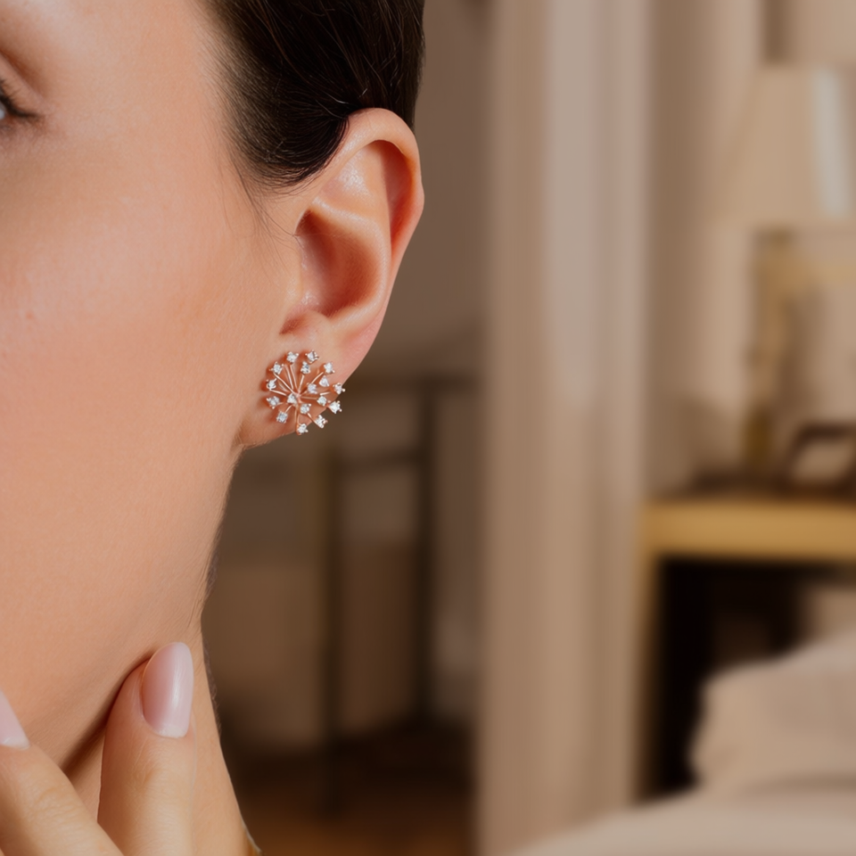 E1598 Rose Gold Snowflake Stud Earrings With Round Zircon Claw Setting For Women Trendy Fashion Jewelry
