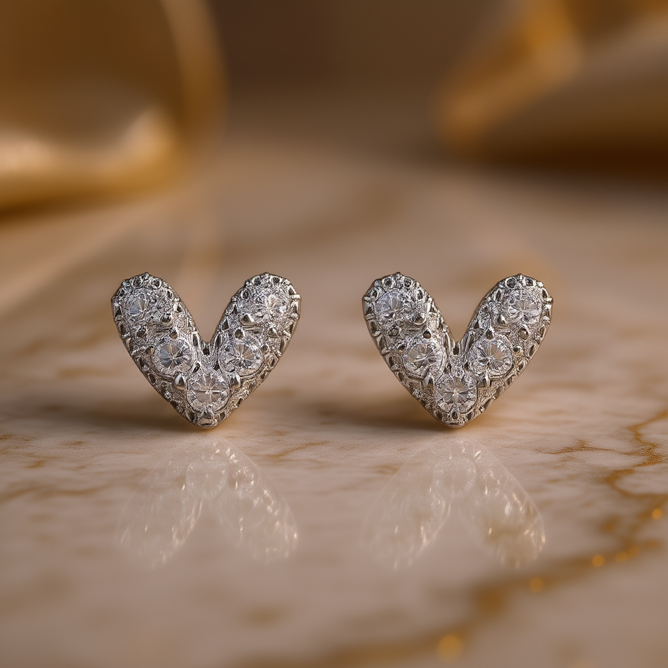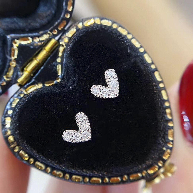 E1611 White Gold Heart Cut Diamond Earrings Women's Romantic Everyday Wear Natural D Color