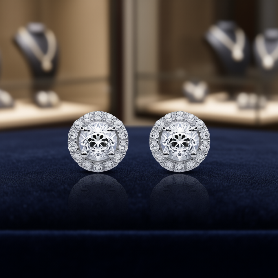 E1661 White Gold Diamond Earrings Round Brilliant Cut D Color Natural Diamond Classic Women's Wedding Jewelry