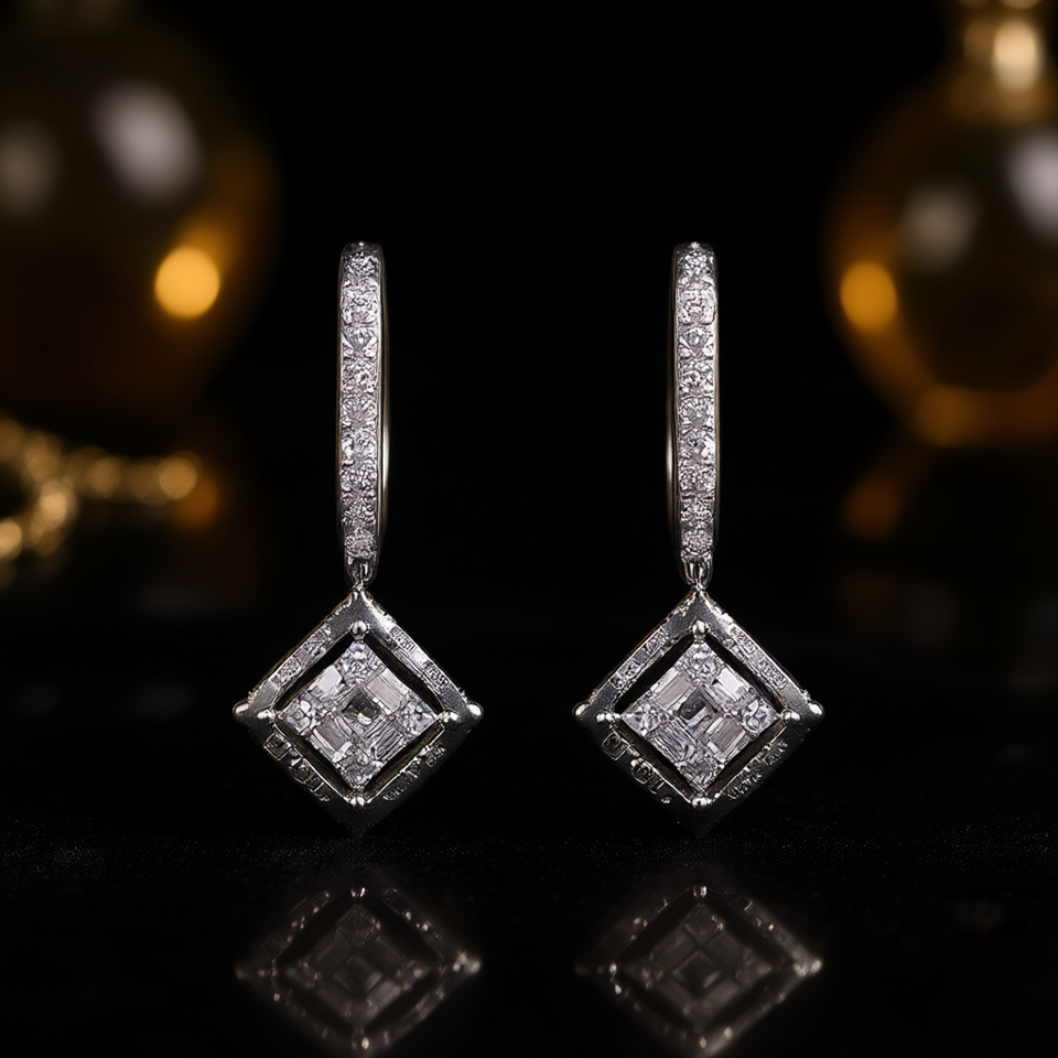 E1681 White Gold Diamond Earrings Emerald Cut Natural Classic Women's Jewelry
