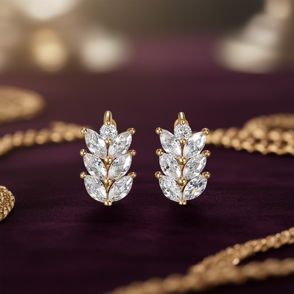 E1693 White Gold Crystal Stud Earrings Plant Shape Claw Setting Luxury Women's Party Jewelry