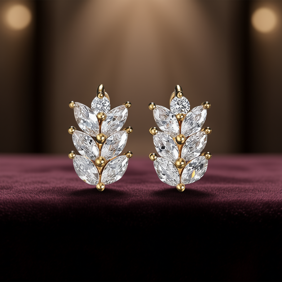 E1694 Gold Plated Crystal Stud Earrings Plant Shape Luxury Women's Party Jewelry Zinc Alloy Claw Setting