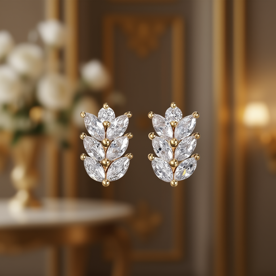Orecchini a perno placcati oro E1694 con cristalli, a forma di pianta, gioielli classici da donna per feste, con montatura a griffe
