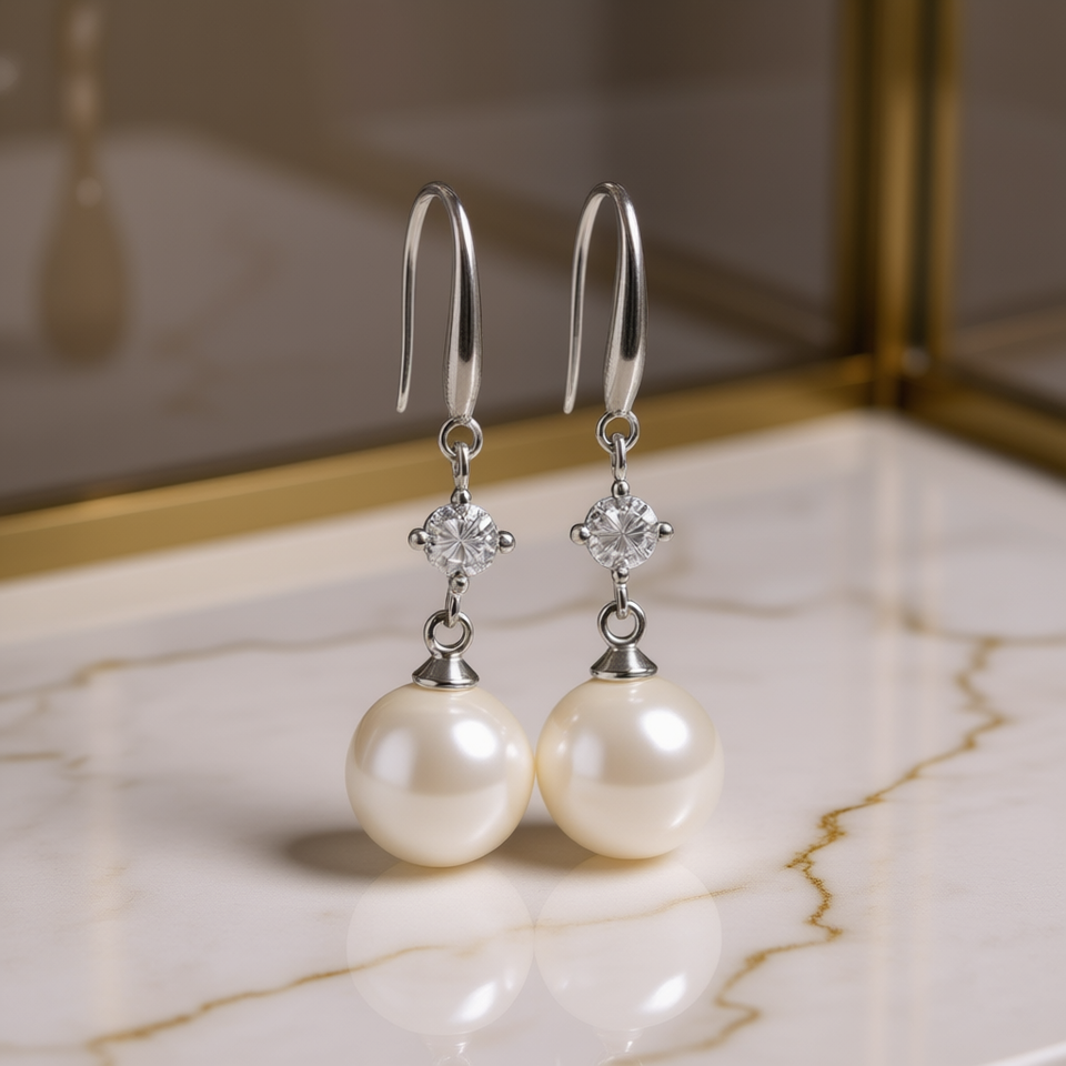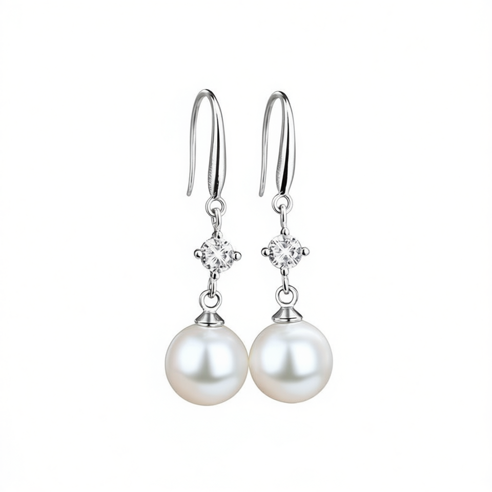 E1740 White Gold Drop Earrings With Akoya Cultured Pearl Round Shape AAA Grade Silver Classic Wedding Women's Jewelry