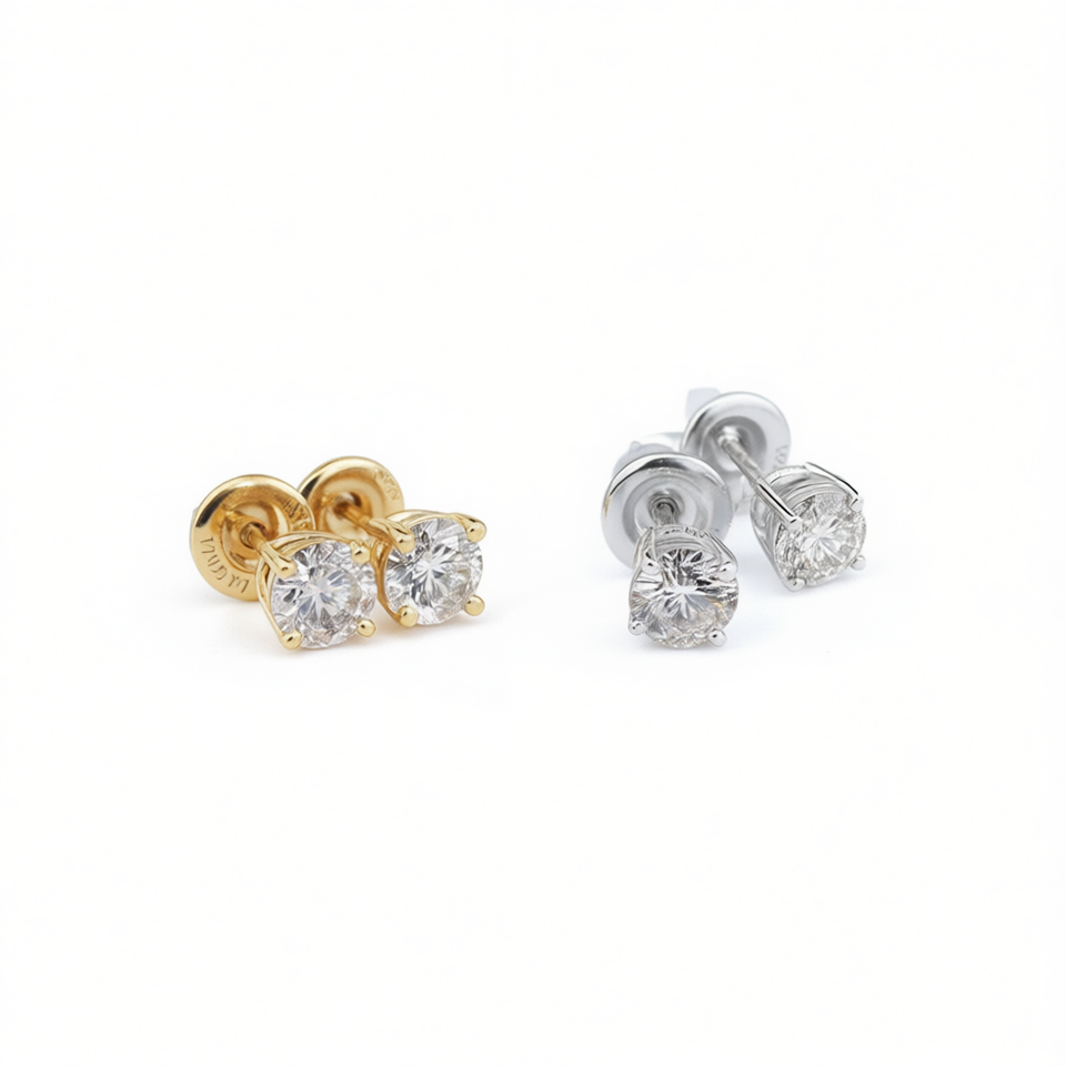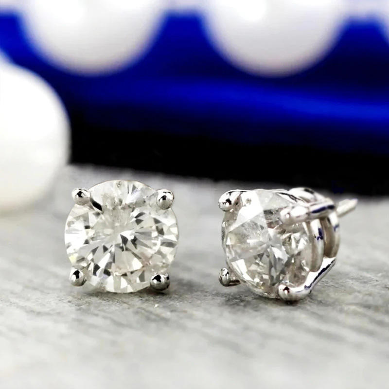 E1752 White Gold Stud Earrings Round Brilliant Cut Natural Diamond Women's Jewelry