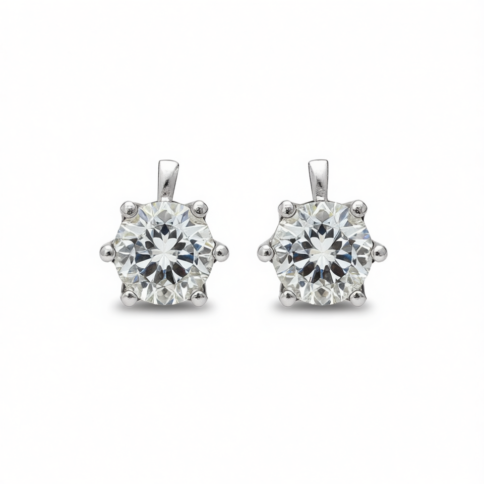 E1757 White Gold Diamond Stud Earrings Round Brilliant Cut Claw Setting Women's Classic Engagement Jewelry