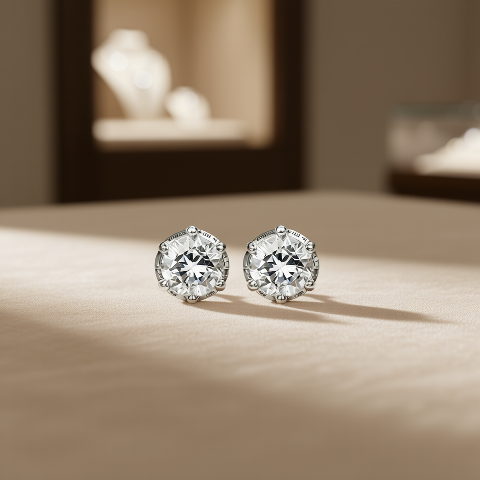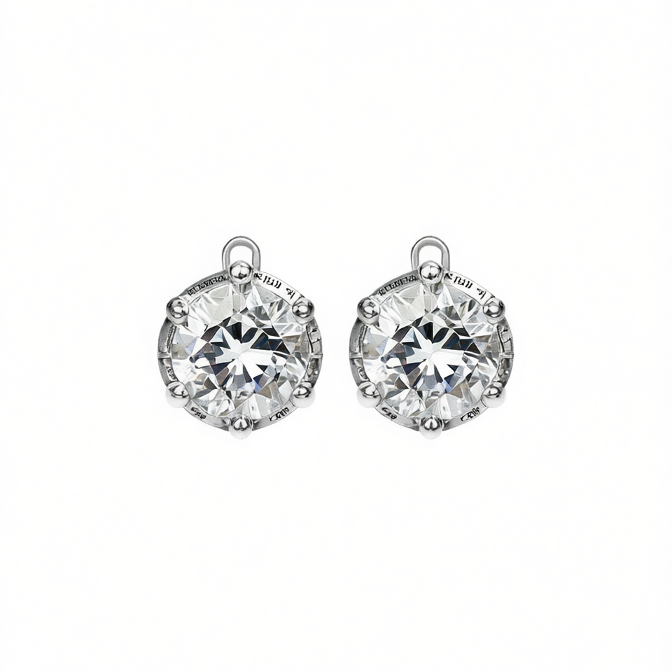 E1757 White Gold Stud Earrings Round Zircon Claw Setting Classic Women's Engagement Jewelry