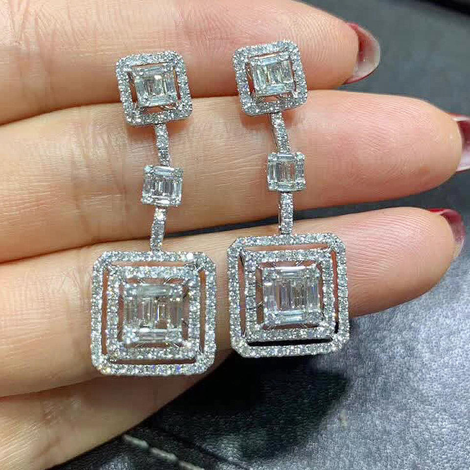 E1807 White Gold Diamond Earrings Emerald Cut D Color GIA Certified Luxury Women's Wedding Jewelry