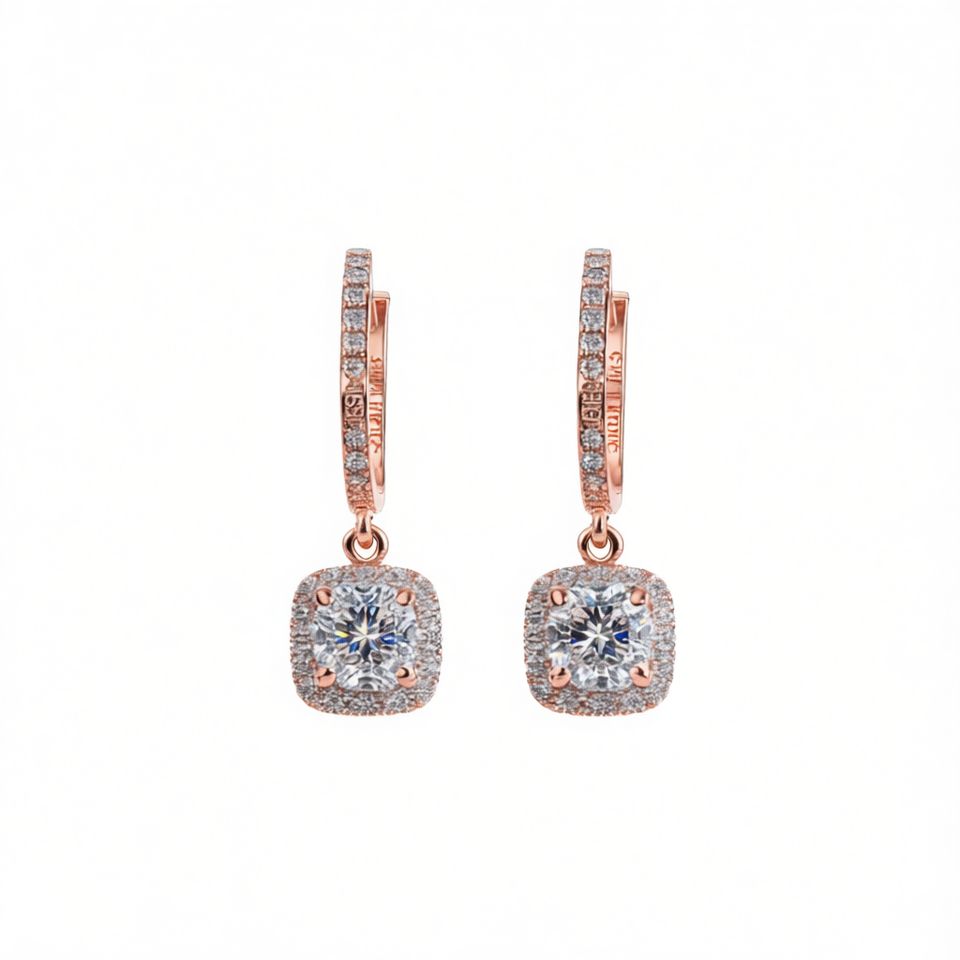 Orecchini a Cerchio E1810 in Oro Rosa con Pendente Quadrato con Diamante, Gioielli di Lusso da Donna per Matrimonio