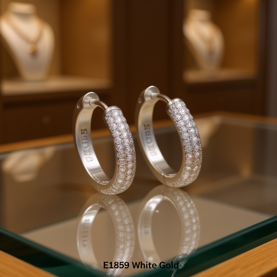 E1859 White Gold Hoop Earrings With Crystal Rhinestone Micro Insert For Women's Everyday Wear Classic Style