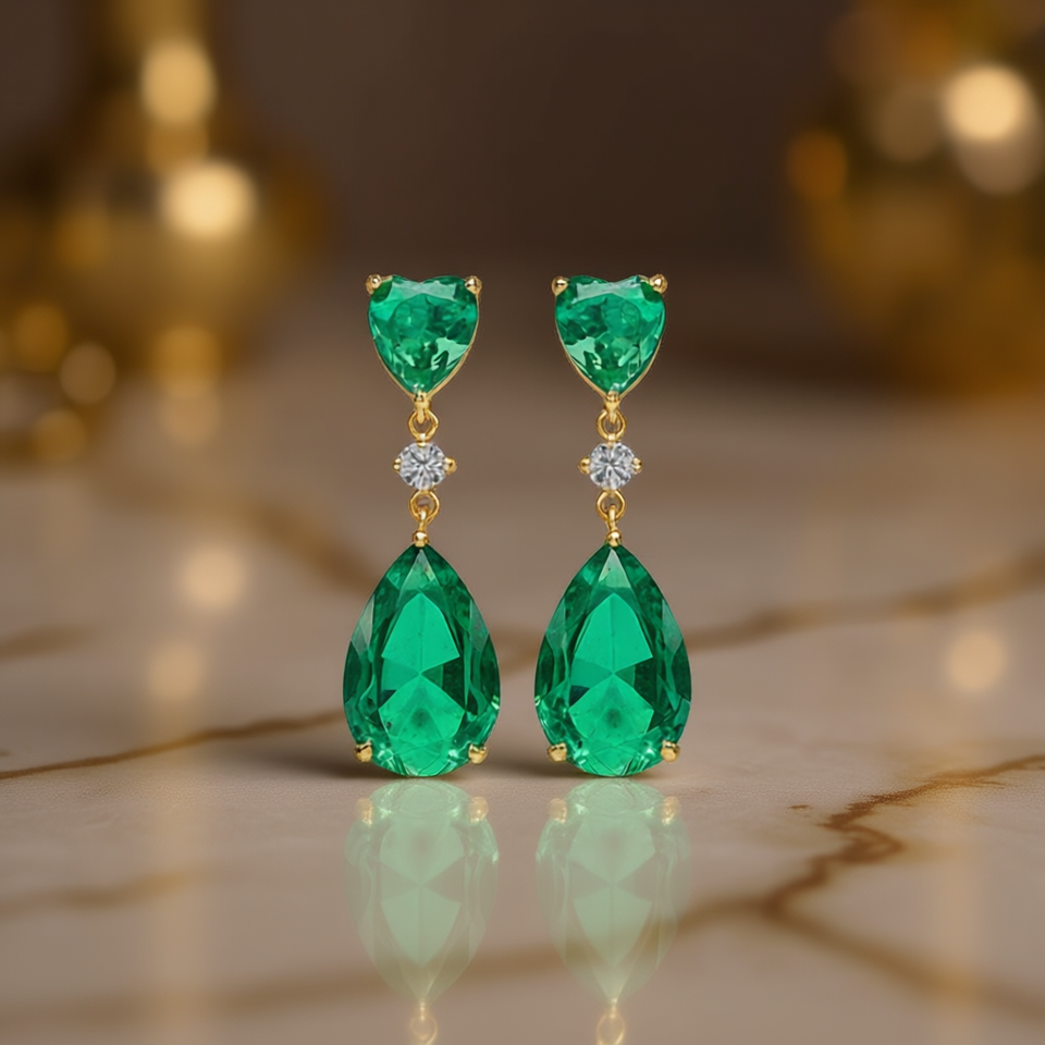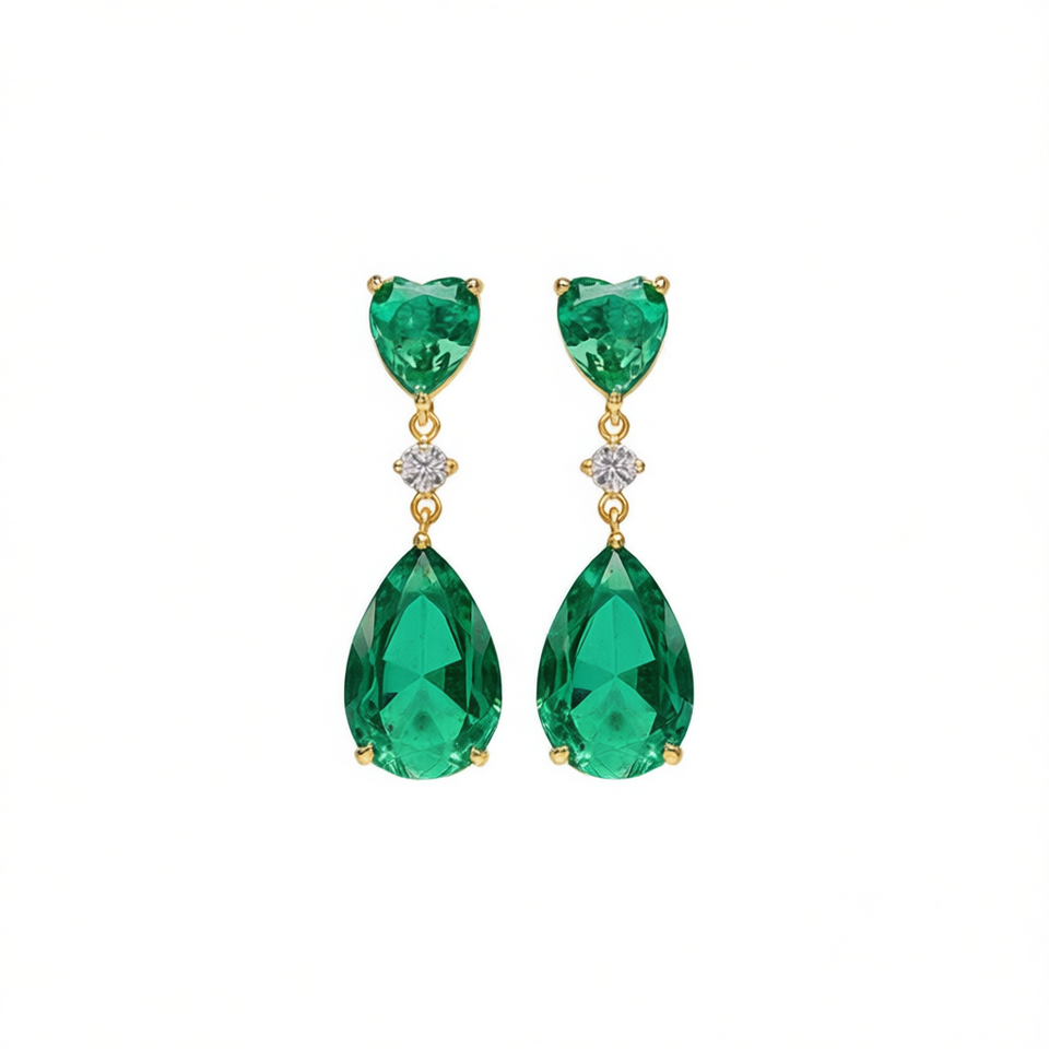 E1872 Green Crystal Drop Earrings Heart Shape Gold Plated Luxury Women's Party Jewelry