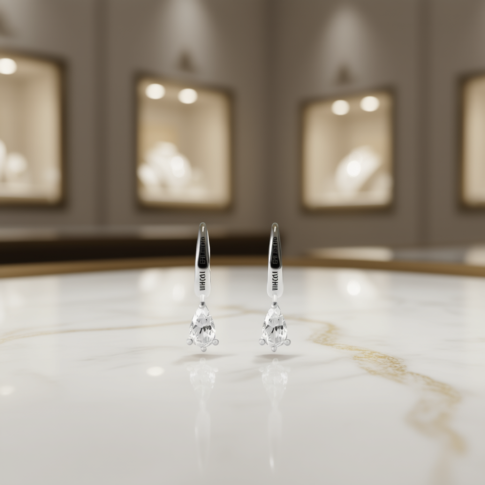 E1915 White Gold Pear Cut Zircon Drop Earrings Claw Setting Classic Women's Wedding Fashion Jewelry