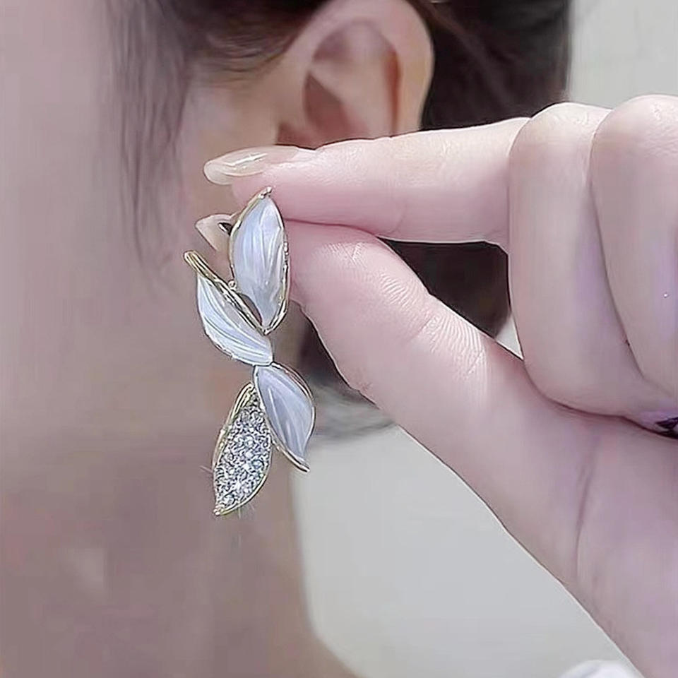 E1926 Gold Drop Earrings Women's Crystal Rhinestone Plant Shape Wedding Romantic Style Jewelry