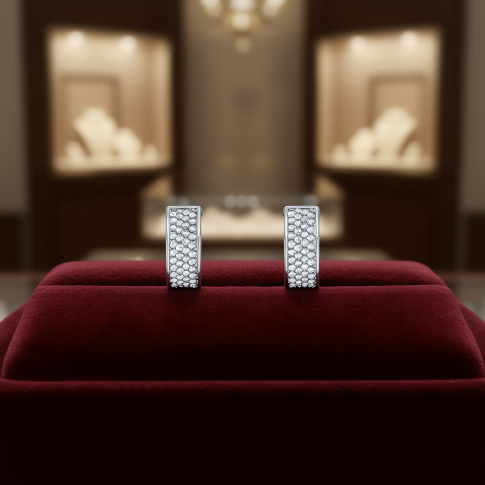 E1933 White Gold Stud Earrings Crystal Rhinestone Geometric Micro Insert Women's Luxury Everyday Wear