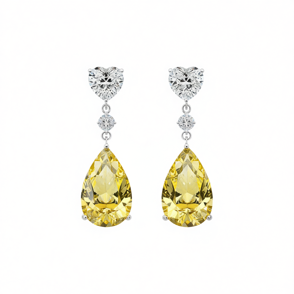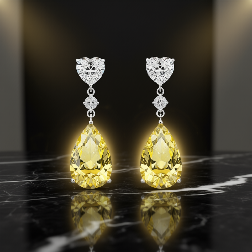 E1946 Yellow Diamond Pear Earrings Natural Fancy Color Women's Classic Wedding Jewelry