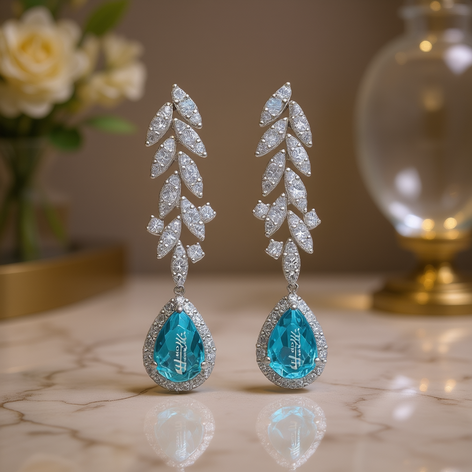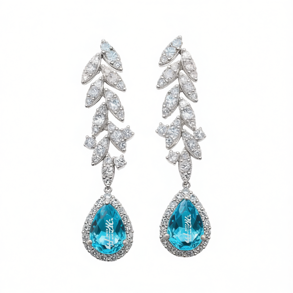E1956 Aquamarine Drop Earrings 925 Silver Water Drop Bezel Setting Classic Women's Wedding Jewelry
