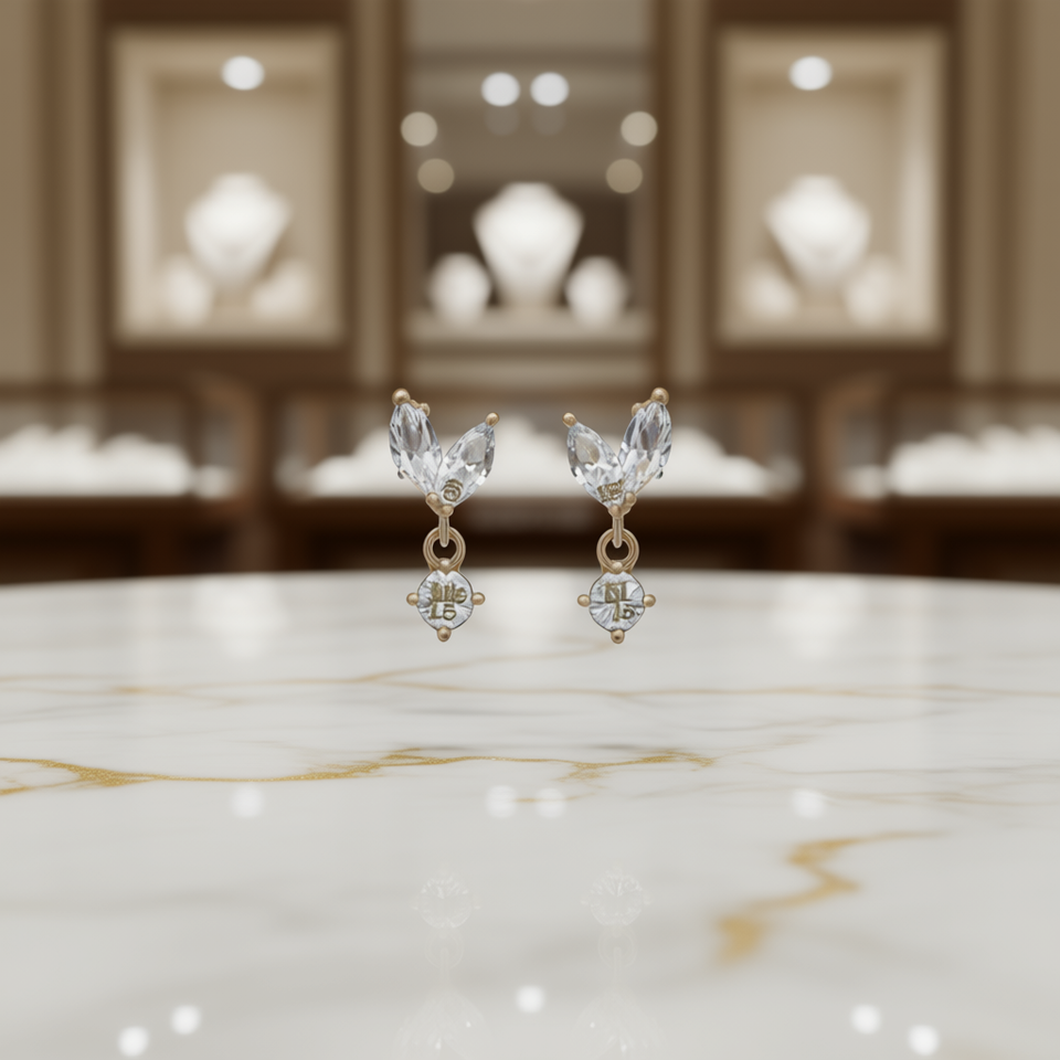 Orecchini Pendenti E1998 in Oro Bianco con Cristalli e Strass, Design ad Ali con Montatura a Griffe, Classici da Donna per Uso Quotidiano