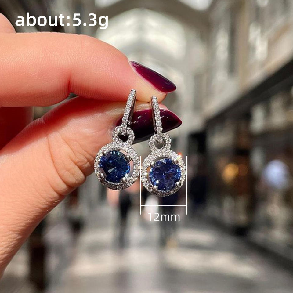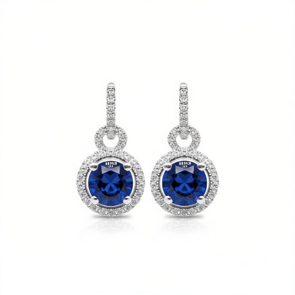 E2016 Sapphire Blue Diamond Earrings White Gold Round Brilliant Cut Women's Wedding Classic Style