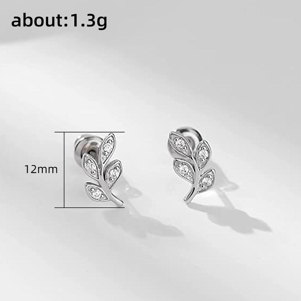 E2020 Gold Leaf Stud Earrings Women's Round Zircon Alloy Romantic Gift Jewelry