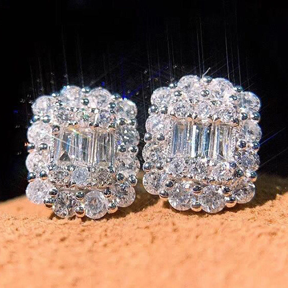 E2021 White Gold Diamond Earrings Emerald Cut Natural Luxury Women's Jewelry