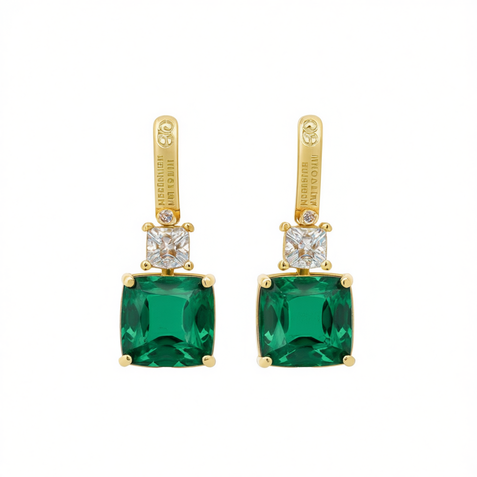 E2027 Green Drop Earrings 18K Gold Plated Emerald Stone Princess Cut Diamond Women's Classic Party Jewelry
