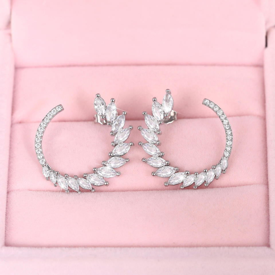 E2050 White Gold Cuff Earrings Crystal Rhinestone Plant Shape Luxury Women's Wedding Jewelry Claw Setting