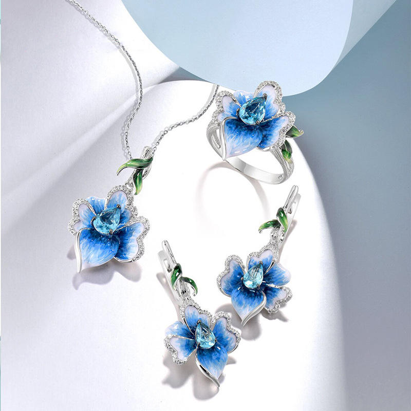 Orecchini pendenti a fiore E2058 placcati argento con zirconi taglio a pera, gioielli da festa da donna, orecchini alla moda in lega