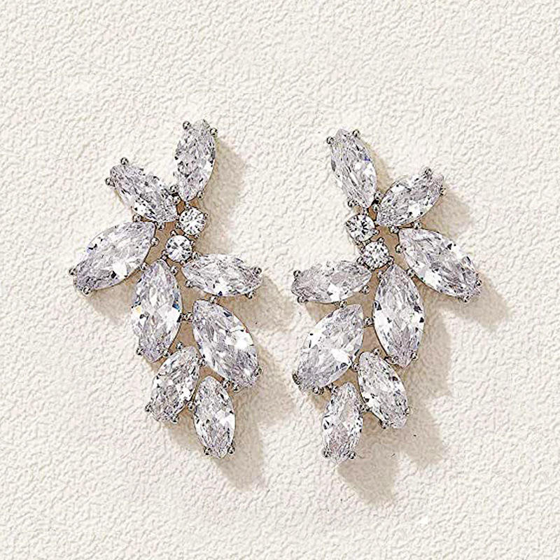 E2086 White Gold Crystal Chandelier Earrings Flower Shape Claw Setting Women's Wedding Luxury Jewelry