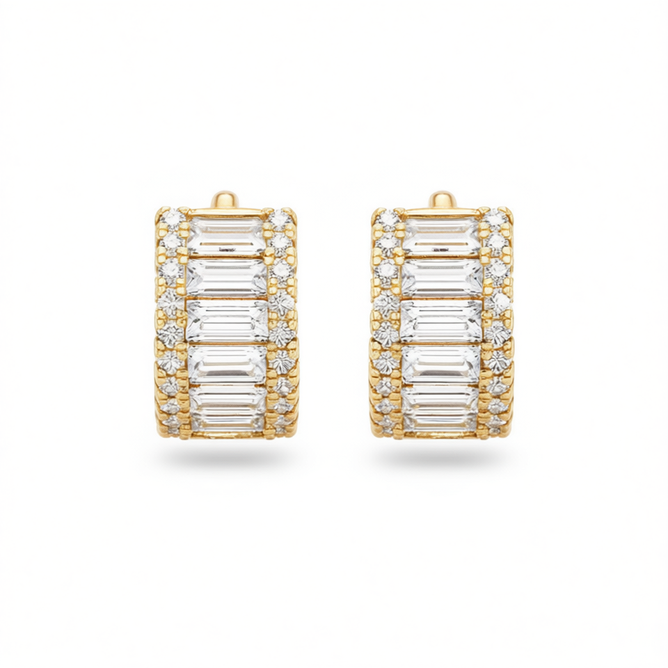 E2110 Gold Huggie Earrings With Emerald Cut Zircon Channel Setting For Women Party Classic Fashion Jewelry