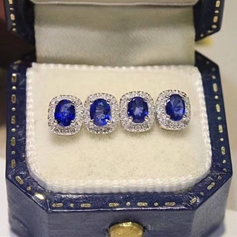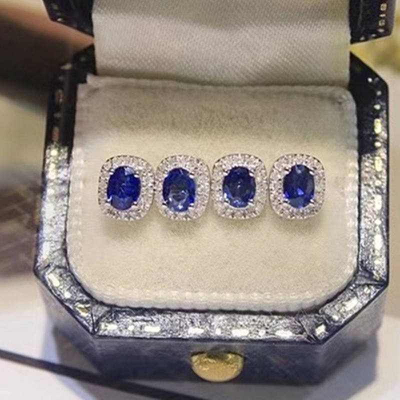 E2115 Sapphire Blue Oval Cut Stud Earrings With Circling Setting Classic Unisex Fine Jewelry