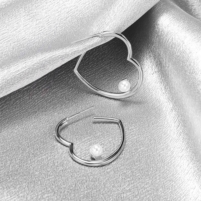 Orecchini a Cerchio E2155 con Cuore Dorato e Perla Finta Bianca, Gioielli Minimalisti da Donna per Uso Quotidiano