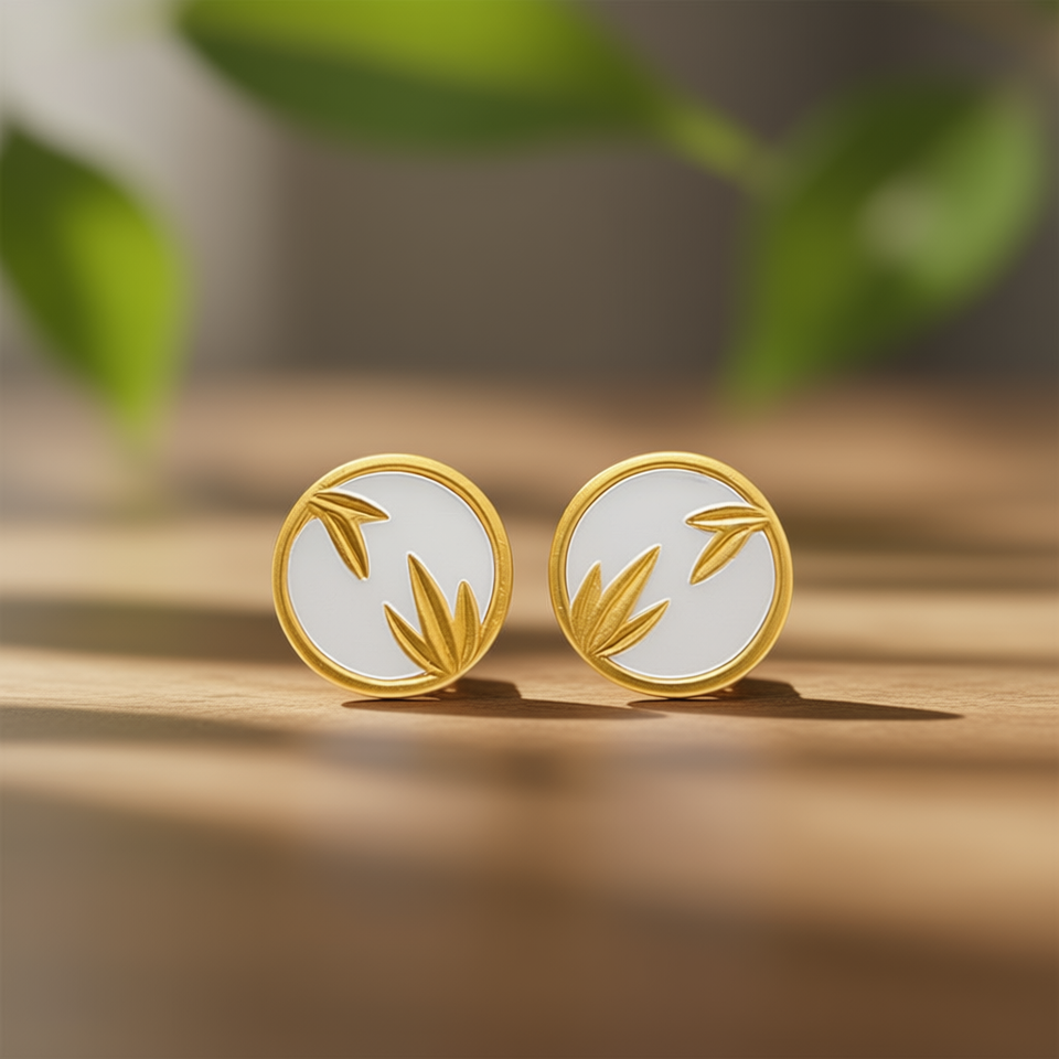 Orecchini a Perno E2169 in Oro con Design Vegetale, Montatura a Castone, Unisex, Classici per Uso Quotidiano